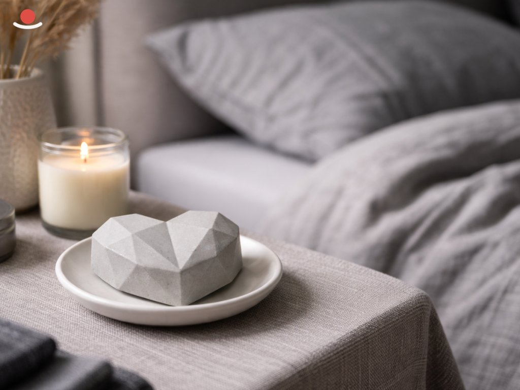 Bílý Maru s šedým aromakamenem Kokoro je víc než jen difuzér – je to symbol vyjádřený materiálem. Šedé, geometricky tvarované srdce je usazeno na bílém podnosu Maru, který mu poskytuje čistý prostor a stabilitu. Tato kombinace syrovosti a elegance skvěle zapadne na noční stolek, kosmetický stolek nebo do relaxačního koutku. Ručně odlévaný kámen s vysokou porézností perfektně absorbuje esenciální oleje a postupně je uvolňuje do okolí bez potřeby vody či elektřiny. Pokud hledáte dárek, který v sobě snoubí moderní umění, českou ruční výrobu a hlubokou osobní symboliku, Kokoro je trefou přímo do černého.
