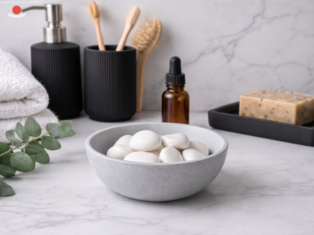 Hledáte minimalistický detail, který do interiéru vznese pocit rovnováhy? Světle šedý Miyabi s bílými aromakamínky vyniká svou jemnou estetikou a praktičností. Hlubší profil misky s výškou 4 cm bezpečně chrání dvanáct aromakamínků, na které můžete postupně nanášet své oblíbené esenciální oleje. Světle šedý odstín misky skvěle doplňuje přírodní materiály jako broušené dřevo, len nebo sušené květiny. Jedná se o ručně vyrobený originál, který kombinuje čistotu bílé barvy s tlumenou elegancí šedé, a nabízí tak nadčasový design pro každodenní relaxaci.