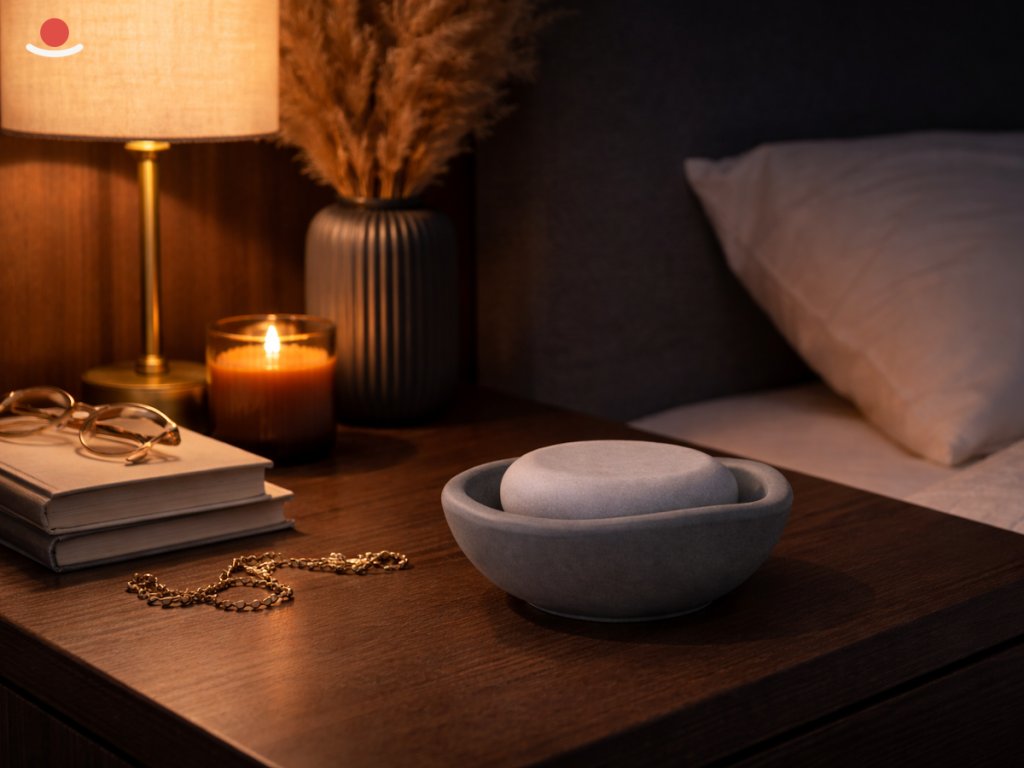 Najděte mu správné místo: Po vybalení umístěte aromakámen na stabilní a rovnou plochu. Ideální je noční stolek, pracovní stůl nebo polička v koupelně.